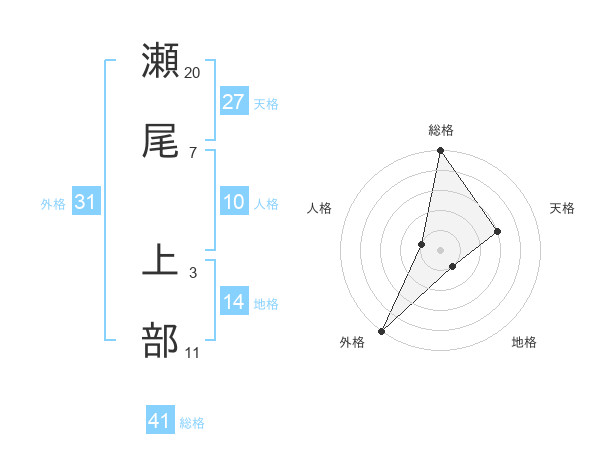 瀬尾 上部さんの総格は41画の5点!