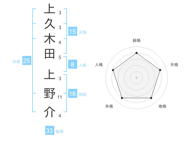 上久木田 上野介さんの総格は33画の4点!