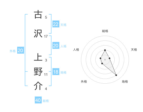 古沢 上野介さんを姓名の画数から五運を鑑定
