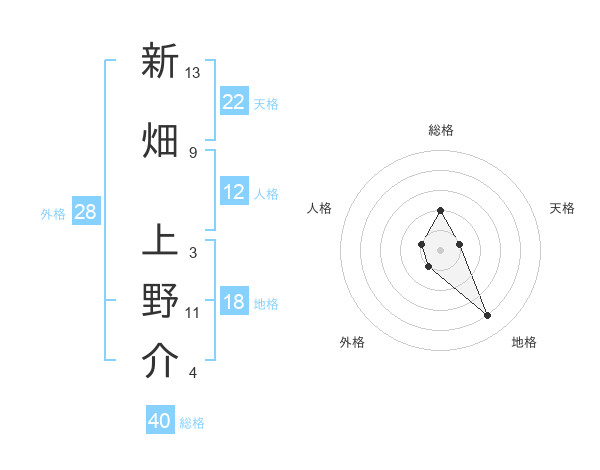 新畑 上野介さんを姓名の画数から五運を鑑定