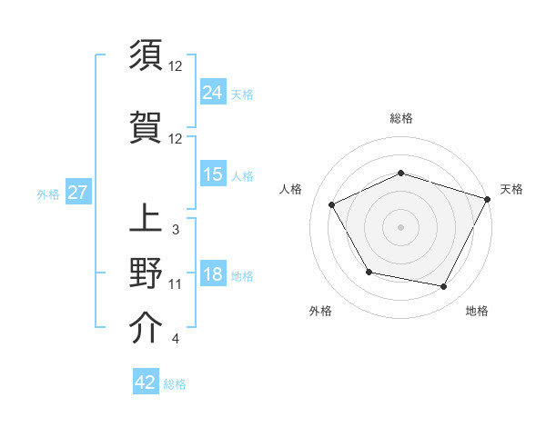 須賀 上野介さんを姓名の画数から五運を鑑定