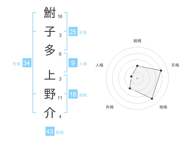鮒子多 上野介さんを姓名の画数から五運を鑑定