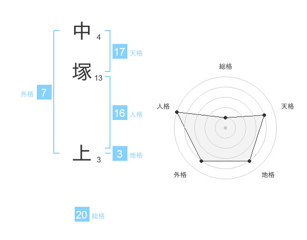 中塚 上さんの天格は17画の4点!