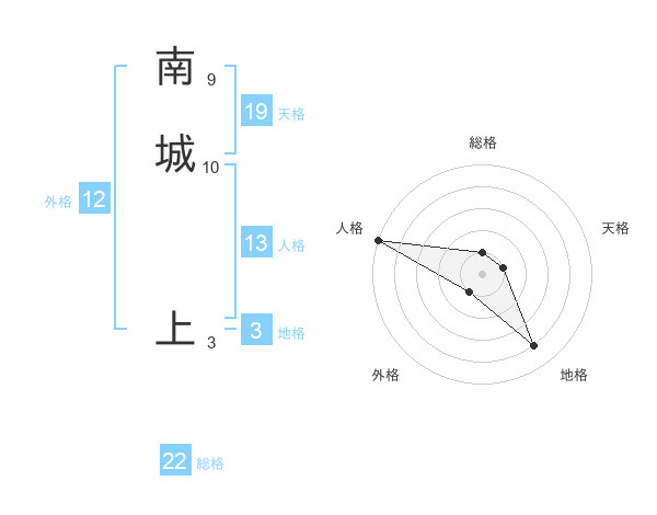 南城 上さんの地格は3画の4点!