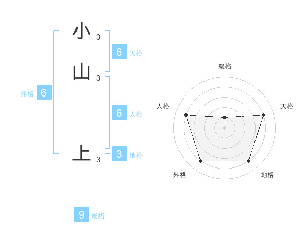 小山 上さんの天格は6画の4点!