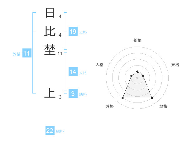 日比埜 上さんの総格は22画の1点!