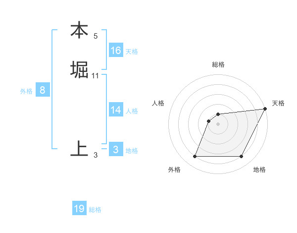 本堀 上さんの天格は16画の5点!