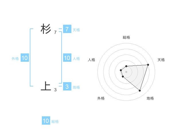 杉 上さんの総格は10画の1点!