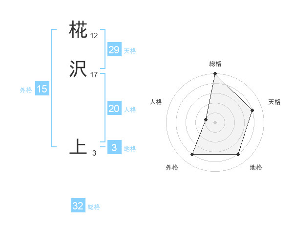 椛沢 上さんの総格は32画の5点!