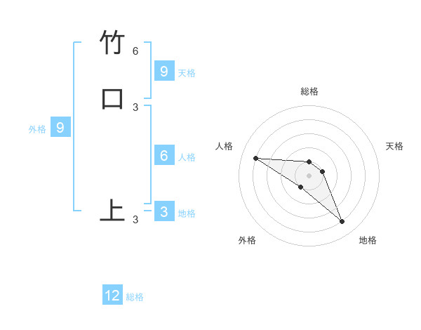 竹口 上さんの総格は12画の1点!