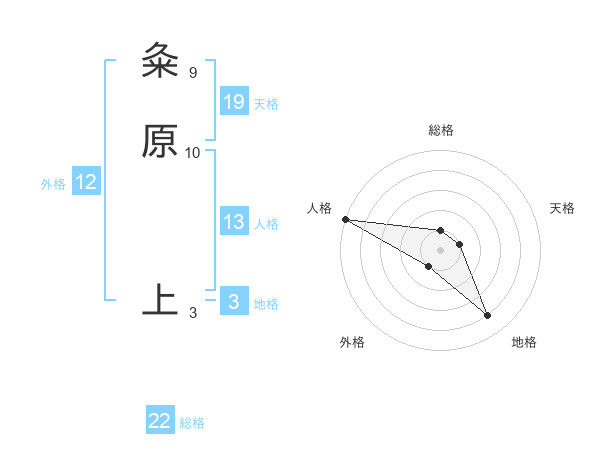 粂原 上さんの総格は22画の1点!