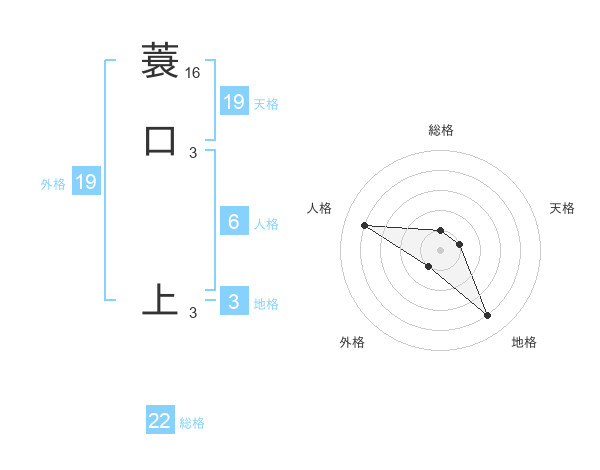 蓑口 上さんの総格は22画の1点!