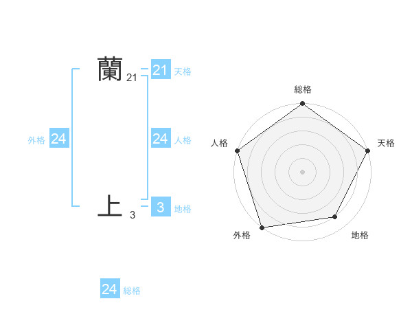 蘭 上さんの外格は24画の5点!