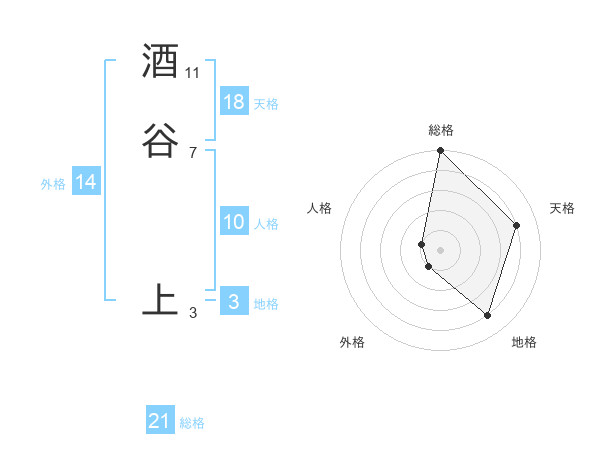 酒谷 上さんの総格は21画の5点!