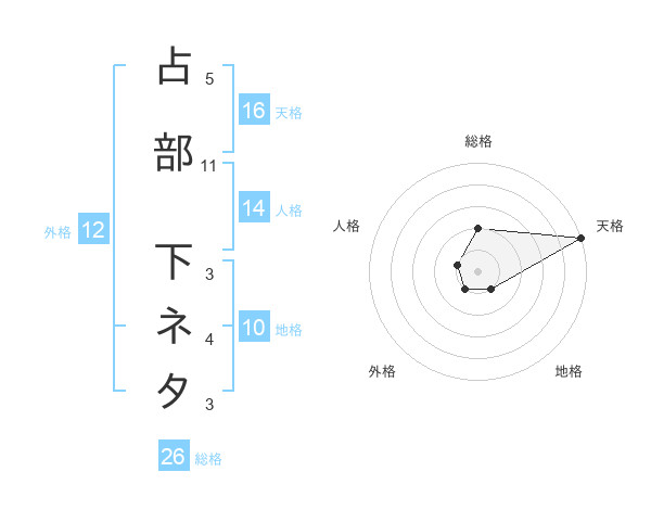 占部 下ネタさんを姓名の画数から五運を鑑定
