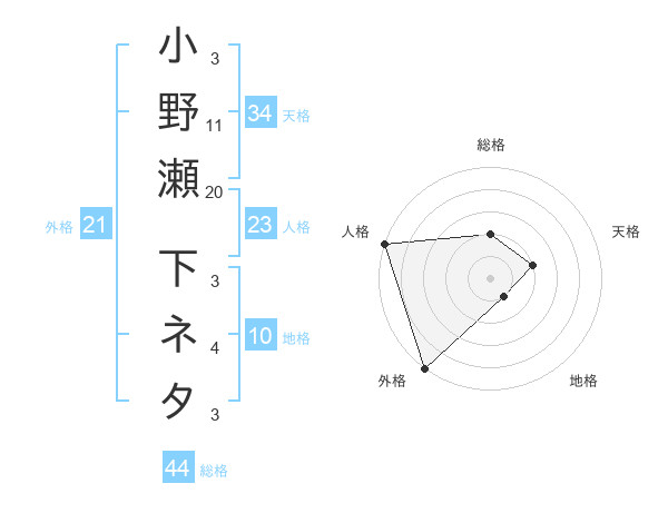 小野瀬 下ネタさんを姓名の画数から五運を鑑定