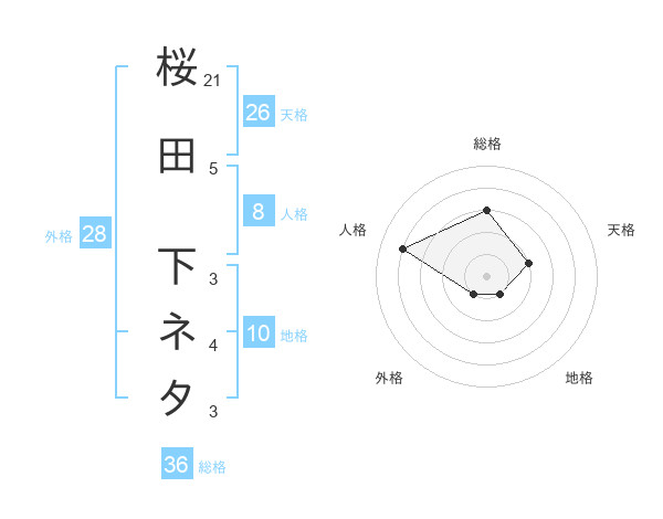 桜田 下ネタさんを姓名の画数から五運を鑑定