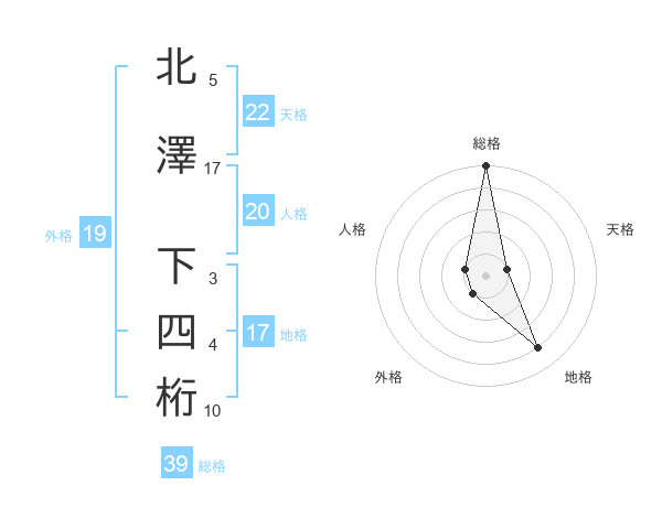 北澤 下四桁さんを姓名の画数から五運を鑑定
