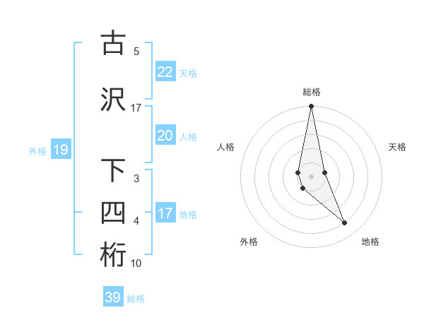 古沢 下四桁さんを姓名の画数から五運を鑑定