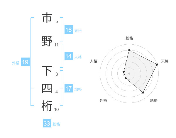 市野 下四桁さんを姓名の画数から五運を鑑定