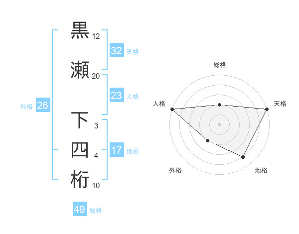 黒瀬 下四桁さんの総格は49画の2点!