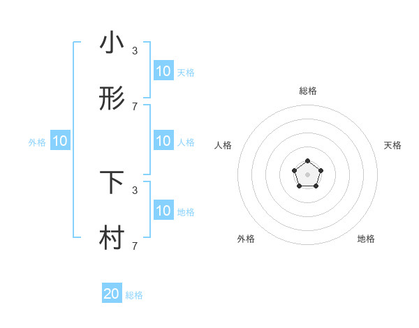 小形 下村さんの総格は20画の1点!