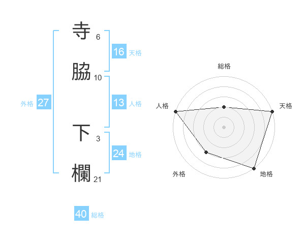 寺脇 下欄さんの天格は16画の5点!