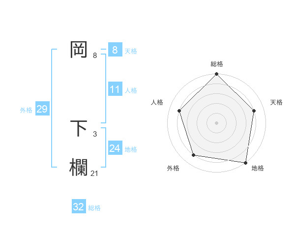 岡 下欄さんの総格は32画の5点!