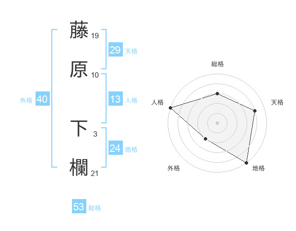 藤原 下欄さんの総格は53画の3点!