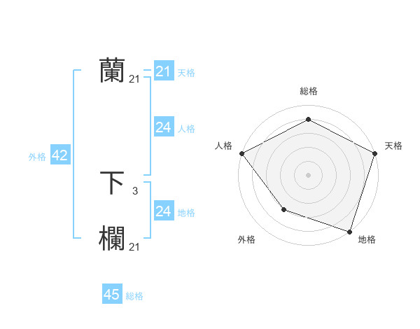 蘭 下欄さんの総格は45画の4点!