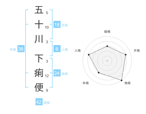 五十川 下痢便さんの総格は42画の3点!