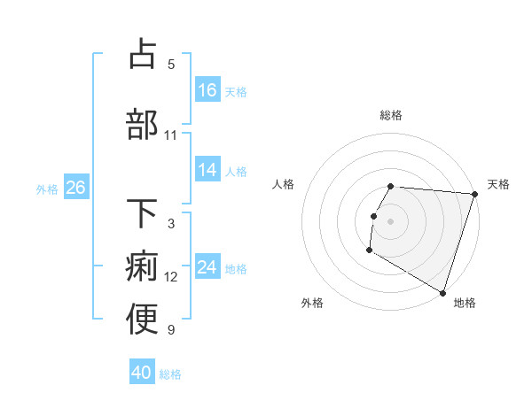 占部 下痢便さんを姓名の画数から五運を鑑定