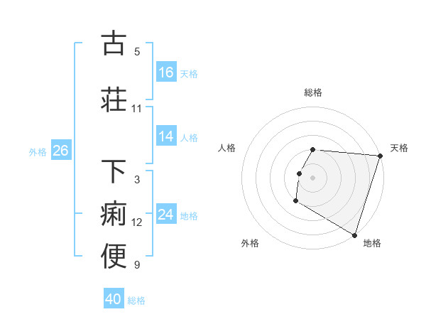 古荘 下痢便さんを姓名の画数から五運を鑑定