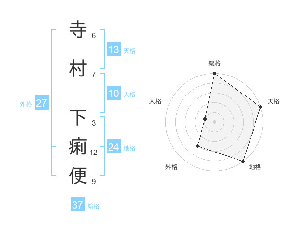 寺村 下痢便さんの総格は37画の5点!