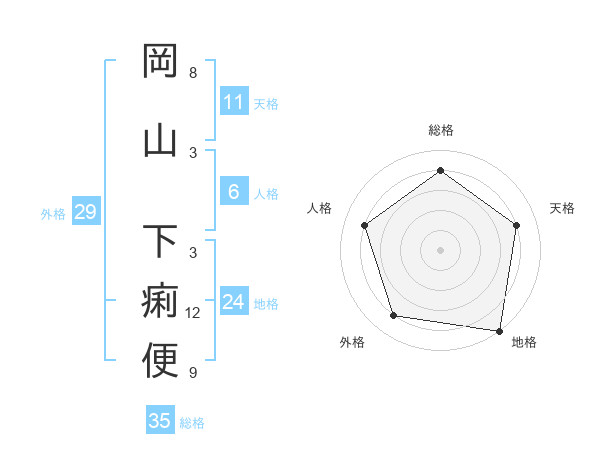 岡山 下痢便さんの天格は11画の4点!