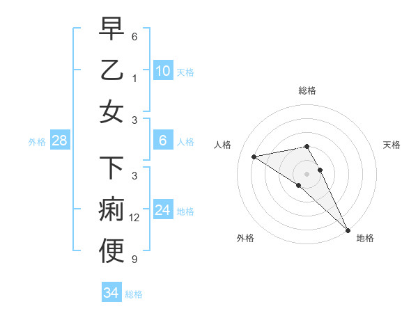 早乙女 下痢便さんの総格は34画の2点