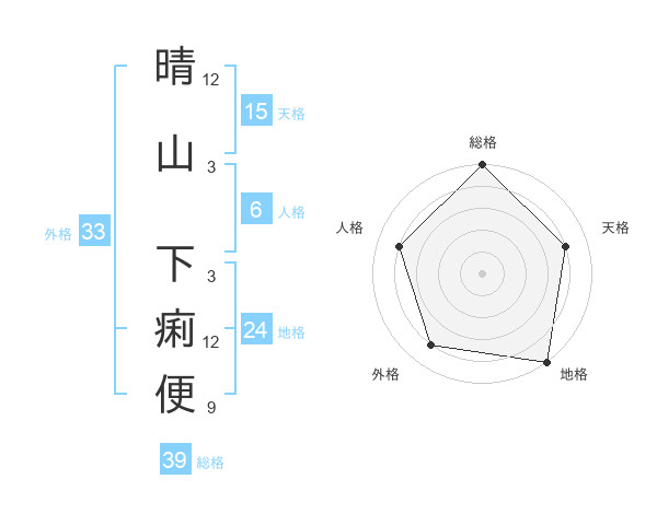 晴山 下痢便さんを姓名の画数から五運を鑑定