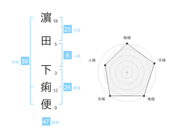 濵田 下痢便さんを姓名の画数から五運を鑑定