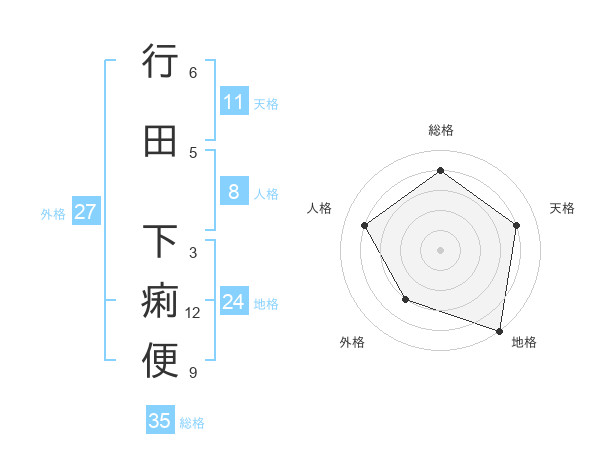 行田 下痢便さんを姓名の画数から五運を鑑定