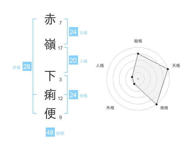 赤嶺 下痢便さんの総格は48画の4点!