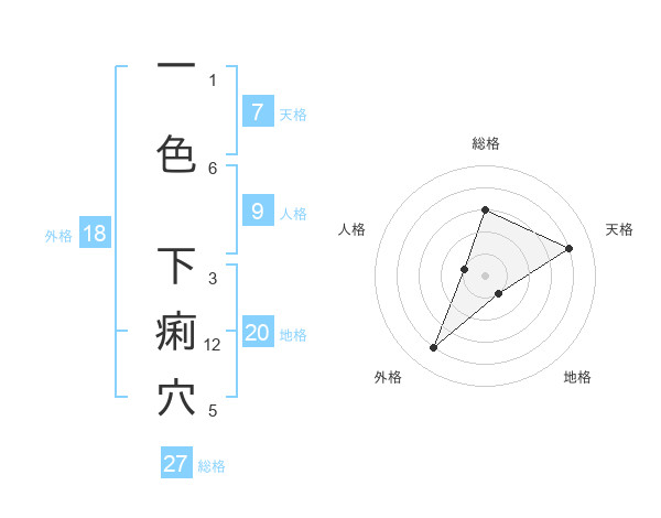 一色 下痢穴さんの総格は27画の3点!
