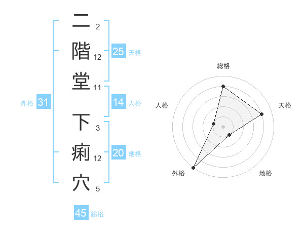 二階堂 下痢穴さんを姓名の画数から五運を鑑定