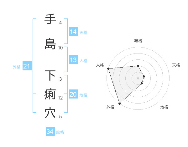 手島 下痢穴さんを姓名の画数から五運を鑑定