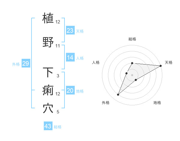 植野 下痢穴さんを姓名の画数から五運を鑑定