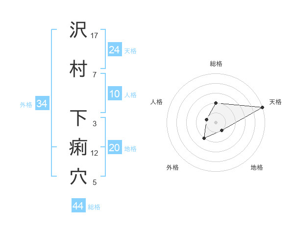 沢村 下痢穴さんを姓名の画数から五運を鑑定