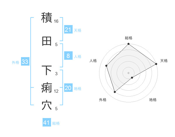 積田 下痢穴さんを姓名の画数から五運を鑑定