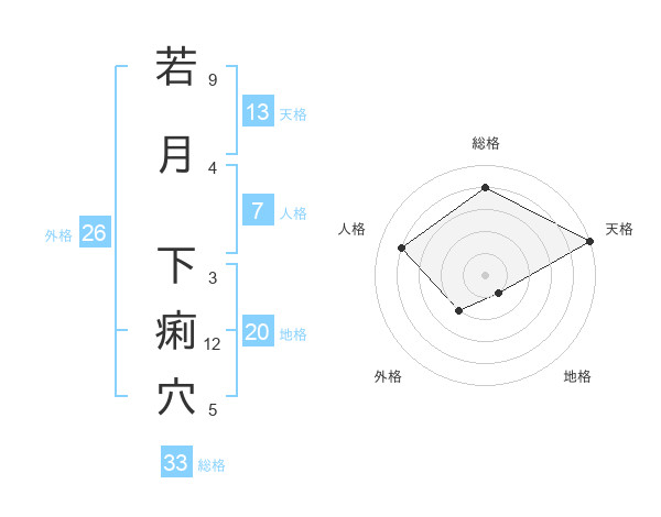 若月 下痢穴さんの天格は13画の5点!