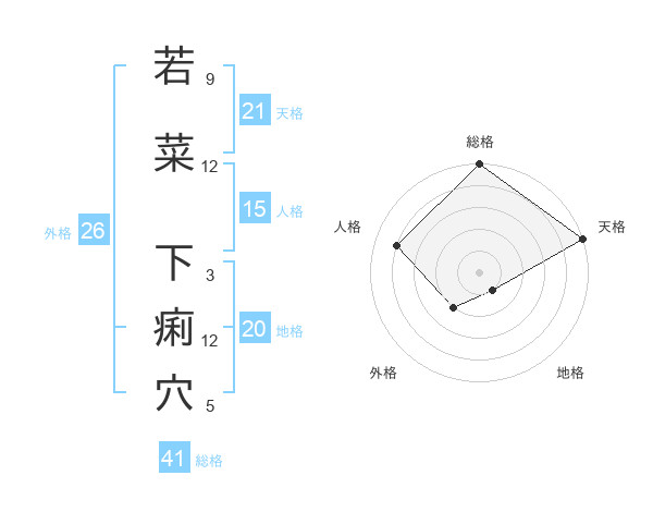 若菜 下痢穴さんを姓名の画数から五運を鑑定