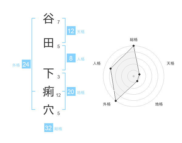 谷田 下痢穴さんの外格は24画の5点!