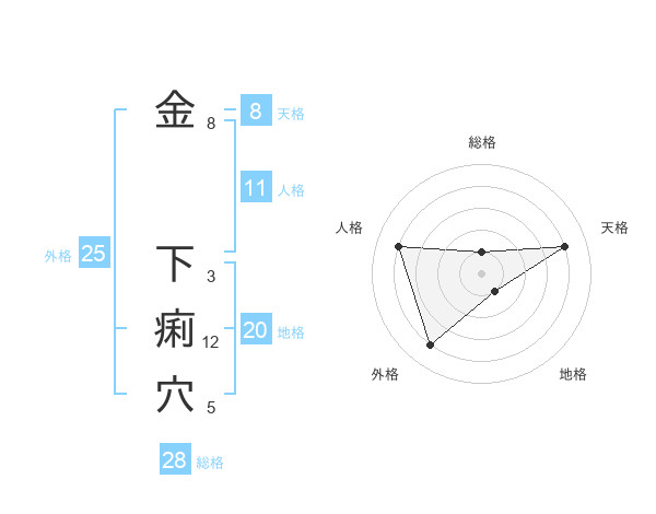 金 下痢穴さんの総格は28画の1点!